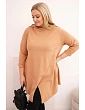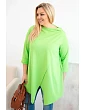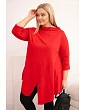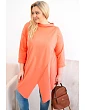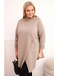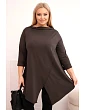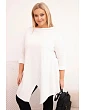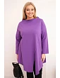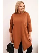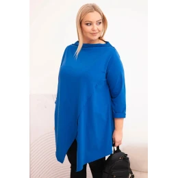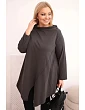Táto dámska blúzka plus size má moderný, asymetrický strih, ktorý dodáva siluete ľahkosť a štýl. Je vyrobená z mäkkej, elastickej bavlny, čo zaručuje pohodlie pri celodennom nosení. Model má nápadný, nezvyčajný predný výstrih a ohrnuté rukávy, ktoré zdôrazňujú voľný, módny charakter blúzky. Je ideálna na každodenný styling, a to k legínam aj k jednoduchým nohaviciam.