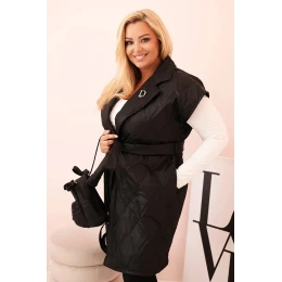 Dámske Plus veľkosť prešívaná vesta s opaskom a golierom čierna
