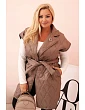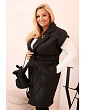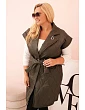 Štýlová prešívaná dámska vesta s opaskom je ponukou pre ženy, ktoré oceňujú eleganciu v kombinácii s pohodlím. Model s klasickým golierom a ozdobnou brošňou v tvare písmena "D" krásne zvýrazňuje siluetu vďaka priloženému opasku, ktorý sa dá v páse upraviť. Prešívaný materiál s geometrickým vzorom dodáva celku moderný charakter a dĺžka po kolená zaručuje ochranu a pohodlie počas chladnejších dní.