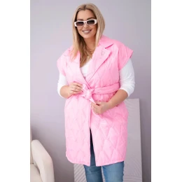 • Dámske Plus veľkosť prešívaná vesta s opaskom a golierom svetlo ružová