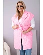 3. Dámske Plus veľkosť prešívaná vesta s opaskom a golierom svetlo ružová