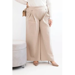 Dámske plus veľkosť široké nohavice s líhaním tmavá béžová
