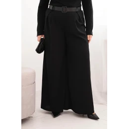 Dámske Plus veľkosť široké nohavice s opaskom čierna