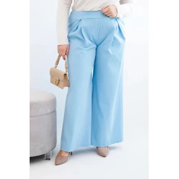 Dámske Plus veľkosť široké nohavice so skladaním modrá
