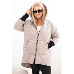 Dámske Plus veľkosť zimná bunda prešívaná s kapucňou tmavo béžová
