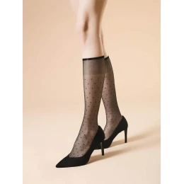 Vzorované dámské podkolenky z vlákna Lycra se šněrováním z polyamidu. Žádná výztuha na špičce, široký netlačící lem.