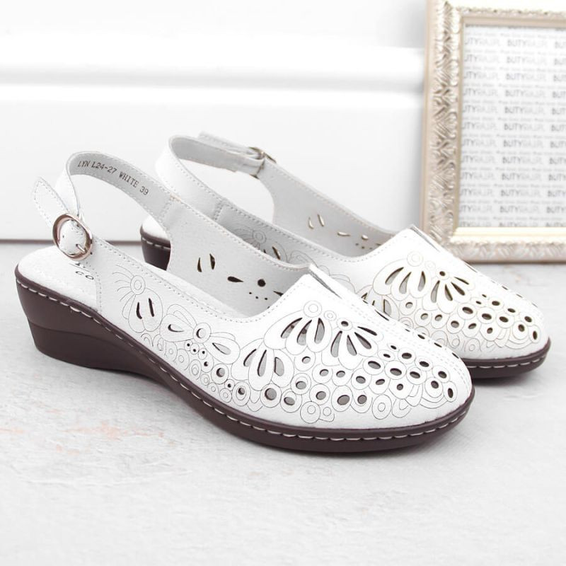 Dámské pohodlné celokožené ažurové sandály bílé T.Sokolski L26-27