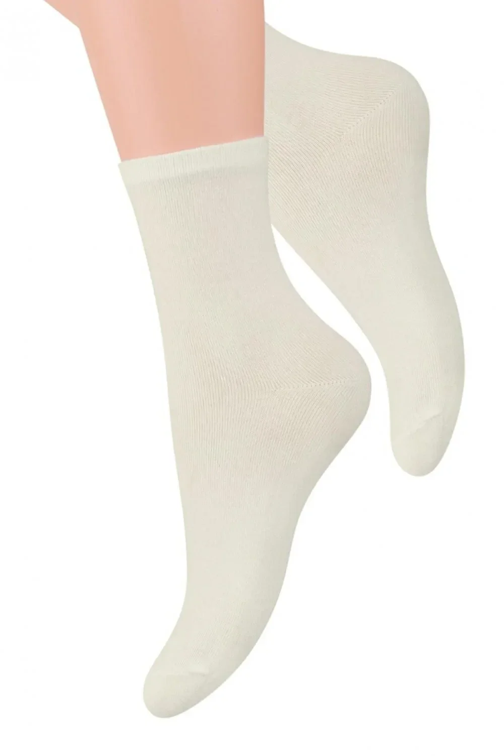 Dámske ponožky 037 Steven - krémovej farby - z kvalitnej česanej bavlny - plochý šev - model je ideálny pre každodenné nosenie