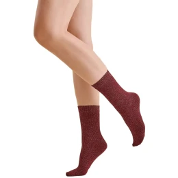 Dámske ponožky 1223 Nora wine GABRIELLA - bordová farba - z lesklej priadze s elastickými vláknami - zosilnená päta a predná časť - rebrovanie - nesťahujú