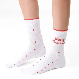 Dámske ponožky 136 113 Steven - biele - vyrobené z kvalitnej bavlny - froté ponožky s protišmykovou podrážkou - mäkké, teplé, pohodlné a ideálne na chladné dni - vianočná kolekcia