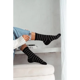 Dámske bavlnené ponožky s jemnými lurexovými prúžkami.