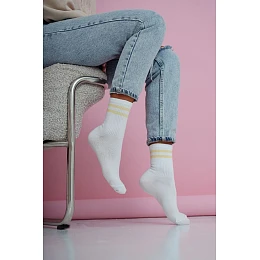 Dámské ponožky Dva tenké pruhy Bílá-žluté