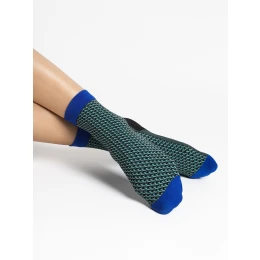 Ponožky jsou ozdobené vzorem "romby". Špičky, paty a lem jsou jednobarevné.