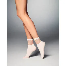 Ponožky z mikrovlákna, v horní linii z tenké lycry zdobené jemným vzorem s tečkami, s netlačícím, ozdobným lemem.