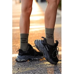 Dámské ponožky s nápisem Your Ex olivové model 21679087 - Milena