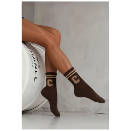Pridanie recenzie k Dámské ponožky s proužky a písmenem C čokoládové