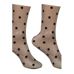 Dámske ponožky s tylovým bodkovaným vzorom sú elegantným a jemným doplnkom, ideálnym pre outfity, ktoré kombinujú ženskosť s jemnosťou.