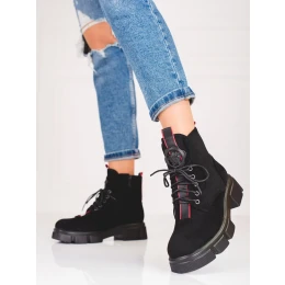 Dámske praktické čierne členkové topánky na plochom podpätku