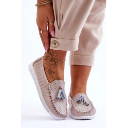 Dámské prolamované kožené mokasíny Světle růžové model 21618150 - EVENTO