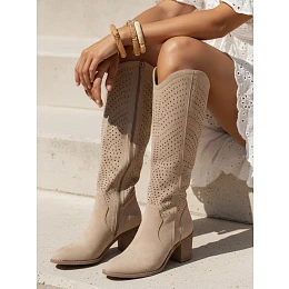 Dámské prolamované semišové kozačky model 22128503 béžové - FashionStreet