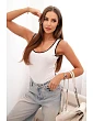 Štýlové dámske body z mäkkého a elastického materiálu s jemnou rebrovanou štruktúrou. Model so širokými ramienkami, zaobleným výstrihom a jemným ozdobným lemovaním na okrajoch, ktoré dodáva ženský šarm. Body sa dokonale prispôsobí postave, zvýrazní siluetu a zároveň poskytuje celodenné pohodlie. Perfektne sa hodí k džínsom, sukniam alebo pod sako - je vhodné na každodenné aj elegantné outfity.