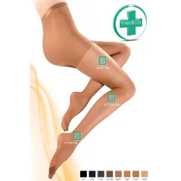 Dámské punčochové kalhoty Relax medica 20 den Gabriella - díky speciální technologii tvarují linii nouhou a boků, pomáhají odstraňovat celilitidu - pro lepší komfort a pohodlí jsou punčocháče zjemněné výtažkem z Aloe Vera zvláčňující vaši pokožku - punčochové kalhoty jsou šity plochými švy minimálně znatelnými pod vaším oblečením - mají vyznačenou špicMateriálové složení: 85% polyamid + 15% elastan