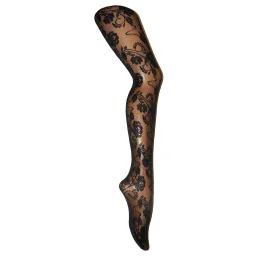 Efektní dámské síťované punčochové kalhoty, které jsou ozdobené květinovým vzorem.