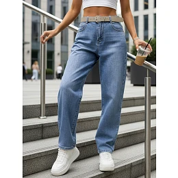 Dámske baggy modré džínsy s opaskom FashionStreet UY2945