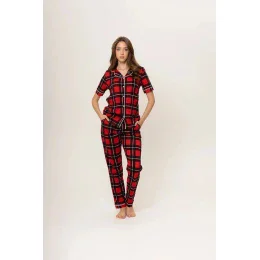 Dámske pyžamo 180/153 červeno čierne káro - Karol
