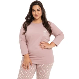 Dámské pyžamo 3006 Gabrielle Taro - vyrobené z vysoce kvalitní a měkké bavlny - béžové tričko s dlouhými rukávy - vzorované kalhoty s kapsami