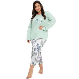 Dámske pyžamo 3016 Ariana Taro - vyrobené z kvalitnej a mäkkej bavlny - tričko je zelené s dlhými rukávmi - zdobené potlačou na prednej strane - vzorované kapri nohavice Zloženie materiálu: 100% bavlna