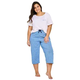 Dámske pyžamo 3162 Leona TARO - vyrobené z kvalitnej bavlny - tričko je biele s krátkymi rukávmi - zdobené potlačou na prednej strane - vzorované nohavice - zdobená mašľa v páse Zloženie materiálu: 100% bavlna