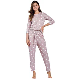 Dámske pyžamo 3212 Dolly TARO - vyrobené z kvalitnej bavlny - fialové tričko s trojštvrťovými rukávmi - dlhé nohavice vo fialovej farbe - zdobené bielymi bodkami - zaväzovanie v páseZloženie materiálu: 100% bavlna