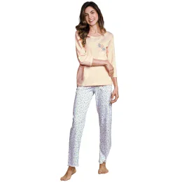 Dámske pyžamo 3240 Ariella peach TARO - vyrobené z kvalitnej bavlny - lososové tričko s trojštvrťovými rukávmi - zdobené potlačou na prednej strane - vzorované dlhé nohaviceZloženie materiálu: 100% bavlna