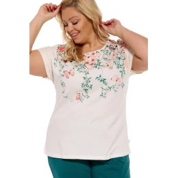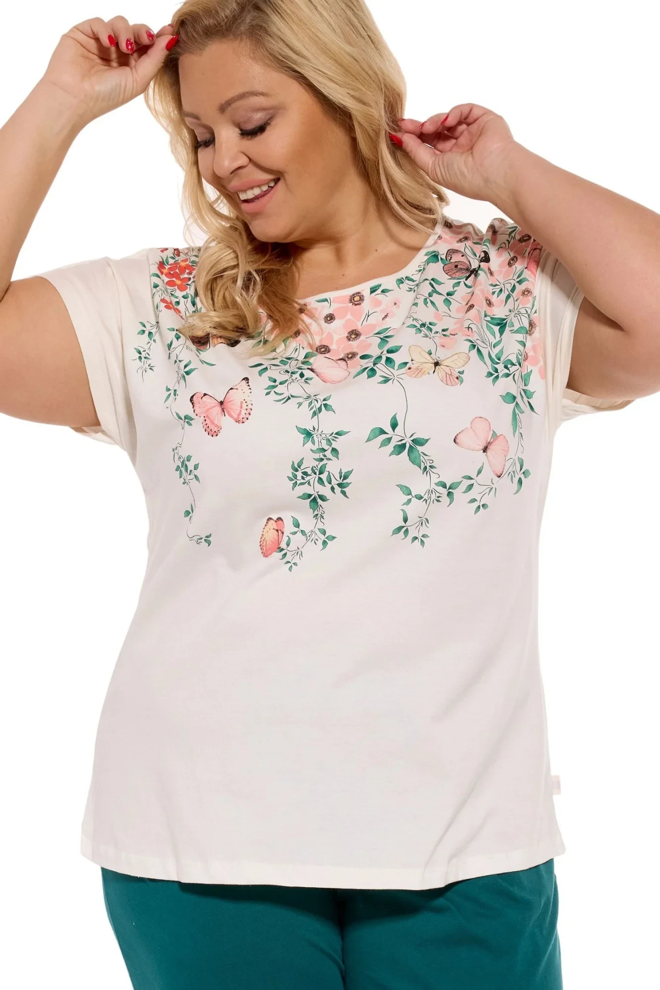 Dámské pyžamo 369/281 Spring plus CORNETTE - z vysoce jakostní bavlny - krémové tričko s krátkými rukávy - na přední straně zdobené potiskem - jednobarevné kalhoty - v pase guma - pyžamo je vhodné i na denní nošeníMateriálové složení: 100% bavlna