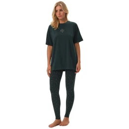 Dámske pyžamo 41889 Febe HENDERSON - tričko s krátkymi rukávmi v zelenej farbe - polkruhový výstrih - potlač na prednej strane - dlhé vzorované nohavice - elastický pás - materiálové zloženie nohavíc: 95% bavlna + 5% elastan