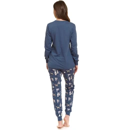 Dámské pyžamo 4340 Doctor Nap - vyrobené z velmi kvalitní a příjemné bavlny - modré tričko s dlouhými rukávy - na přední straně ozdobené potiskem - kontrastní lemování manžet a výstřihu - dlouhé vzorované kalhoty s kapsami - certifikát OEKO-TEX Standard 100