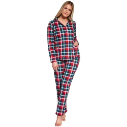 Dámske pyžamo 482/369 Roxy CORNETTE - vyrobené z kvalitnej bavlny - kockované tričko s dlhými rukávmi - zapínanie na gombíky - s vreckami - dlhé kockované nohavice Zloženie materiálu: 100% bavlna