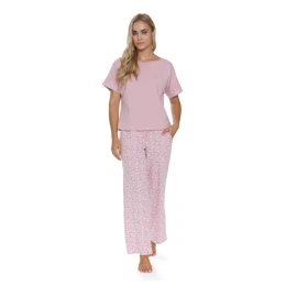 Dámske pyžamo 5324 Daisy flowers Doctornap - vyrobené z kvalitnej bavlny - ružové tričko s krátkymi rukávmi - vzorované lemy rukávov - dlhé vzorované nohavice s vreckami - široké nohavice - certifikát OEKO-TEX Standard 100