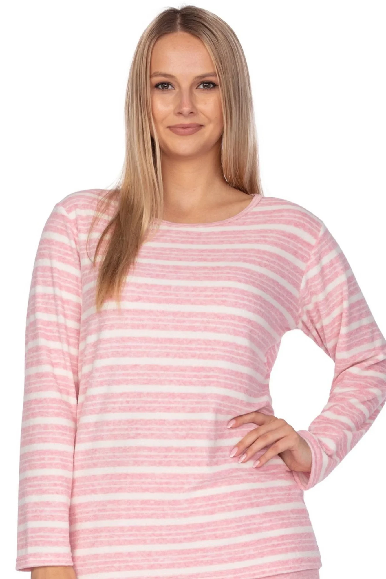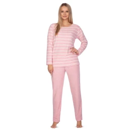 Dámske pyžamo 648 pink plus REGINA - ružové - vyrobené z kvalitnej froté bavlny - ružové pruhované tričko s dlhými rukávmi - dlhé jednofarebné nohavice v ružovej farbeZloženie materiálu: 80 % bavlna + 20 % polyester