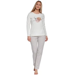 Dámske pyžamo 655/362 Today CORNETTE - vyrobené z kvalitnej a na dotyk príjemnej bavlny - krémové tričko s dlhými rukávmi - potlač na prednej strane - dlhé vzorované nohavice Zloženie materiálu: 100% bavlna