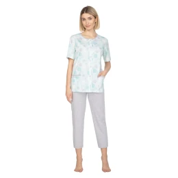Dámske pyžamo 657 green plus REGINA - vyrobené z kvalitnej bavlny - zelené tričko s krátkymi rukávmi - so vzorom - zapínanie na gombíky - s vreckami - jednofarebné nohavice