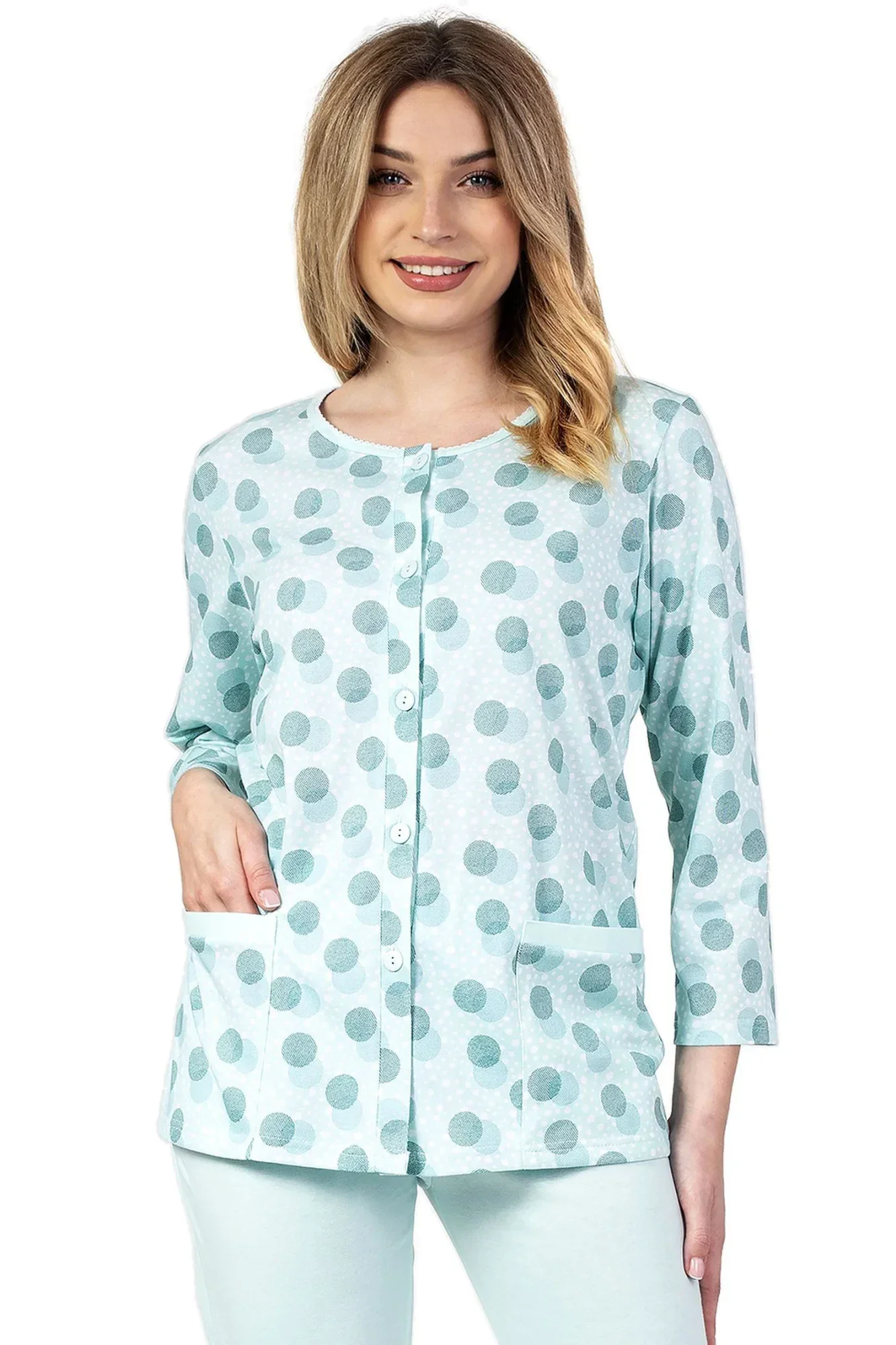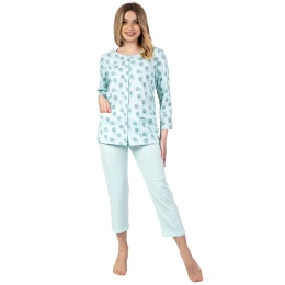 Dámske pyžamo 670 green REGINA - vyrobené z kvalitnej bavlny - zelené tričko s trojštvrťovými rukávmi - so vzorom - zapínanie na gombíky - vrecká na bokoch - pohodlné zelené nohaviceZloženie materiálu: 100% bavlna