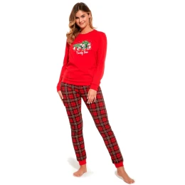 Dámske pyžamo 671/306 Time Cornette - vyrobené z kvalitnej bavlny - červené tričko s dlhými rukávmi - farebná potlač na prednej strane - dlhé vzorované nohavice - pyžamo vhodné na každodenné nosenie
