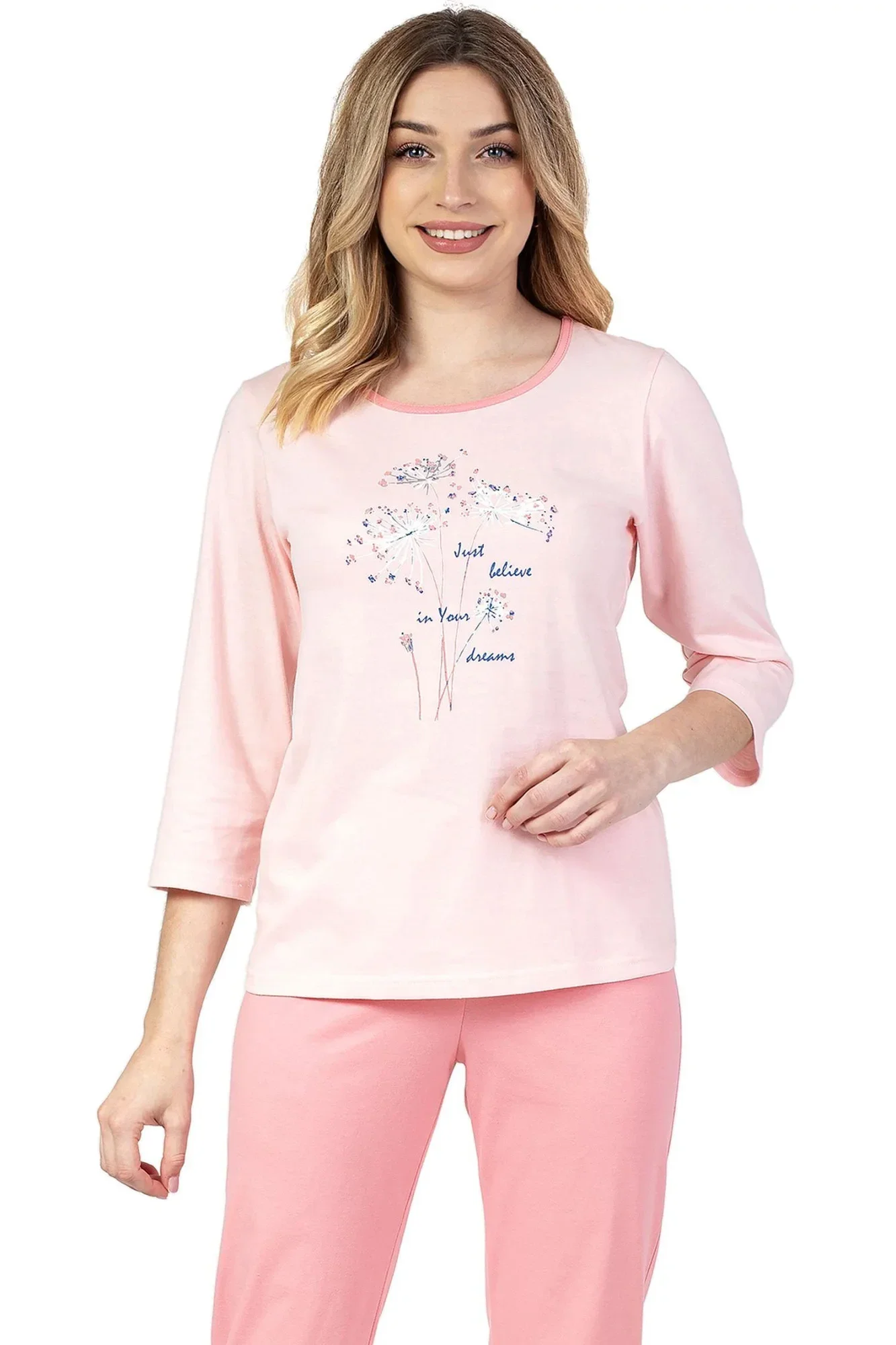 Dámske pyžamo 671 ružové REGINA - vyrobené z kvalitnej bavlny - ružové tričko s trojštvrťovými rukávmi - zdobené potlačou na prednej strane - pohodlné ružové nohaviceZloženie materiálu: 100% bavlna