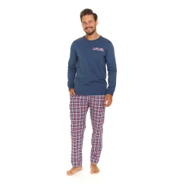 Pánske pyžamo 7147 plus Doctornap - vyrobené z vysokokvalitnej bavlny - modré tričko s dlhými rukávmi - vrecko na prednej strane - dlhé kockované nohavice - elastický pás - certifikát OEKO-TEX Standard 100