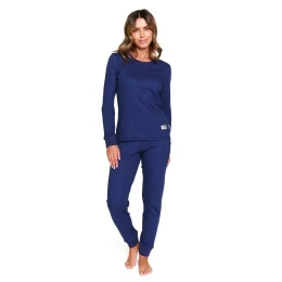 Dámske pyžamo 7349 cosmos Doctornap - vyrobené z kvalitnej pruhovanej bavlny - tmavomodré tričko s dlhými rukávmi - okrúhly výstrih - dlhé nohavice v tmavomodrej farbe ukončené šnúrkou na stiahnutie