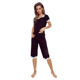 Dámske pyžamo Aster plus ELDAR - čierne - vyrobené z kvalitnej viskózy - krátke rukávy - voľné kapri nohavice - výstrih, rukávy a nohavice ukončené krémovou čipkou Zloženie materiálu: 95% viskóza + 5% elastan