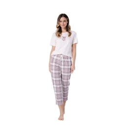 Dámske pyžamo BENEDYKTA 1719 značky LEVEZA je pohodlná a štýlová súprava nočnej bielizne vyrobená zo 100 % prírodnej bavlny. Model spája pohodlie s jemným, ženským dizajnom, vďaka čomu je ideálny na spánok a relaxáciu doma.