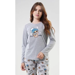 Dámské pyžamo dlouhé model 22032249 šedé - Vienetta